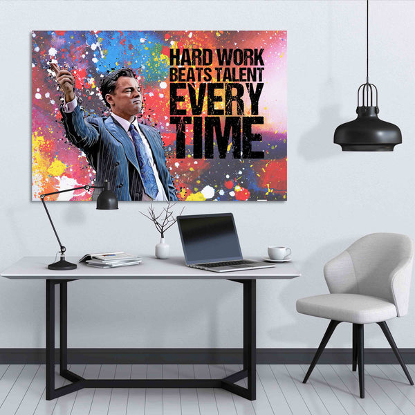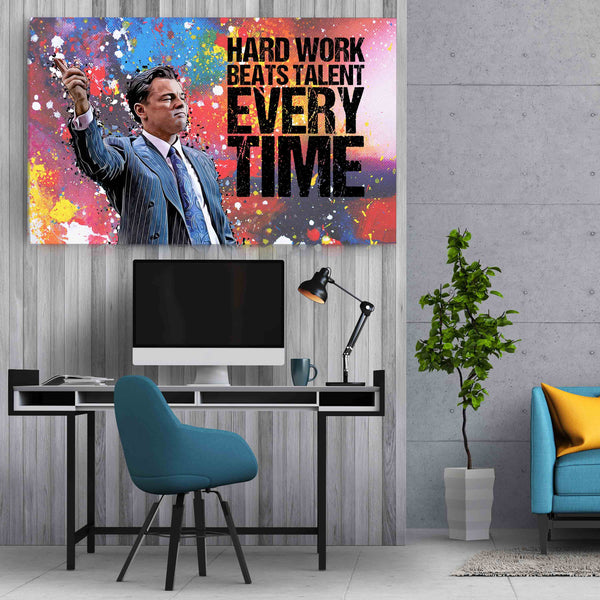 Unser Wandbild Hard Work Beats Talent soll dir täglich vor Augen führen, dass du deine Ziele erreichen kannst! Denn alles, was du dafür benötigst, hast du bereits! Harte Arbeit ist und bleibt die beste Möglichkeit auf Erfolg. Denn eines ist garantiert: Sie zahlt sich aus!