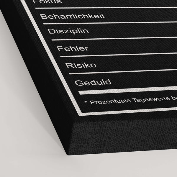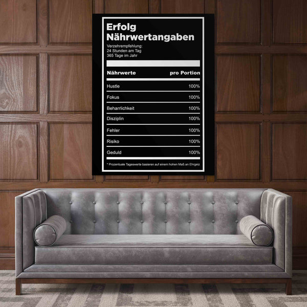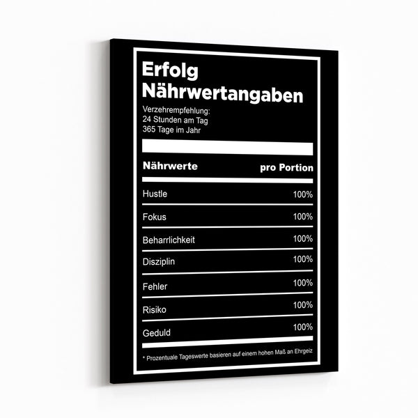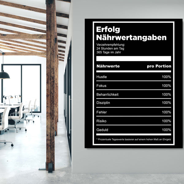 Unser Wandbild Erfolgstabelle stellt auf eine kreative Art und Weise eine Definition für Erfolg dar. Hustle, Fokus, Beharrlichkeit, Disziplin, Fehler, Risiko, Geduld - das alles und noch mehr steckt hinter diesem Begriff. Erfolg ist nichts, was einem einfach passiert. Sondern vielmehr etwas, für das man 24/7 hart arbeiten muss!