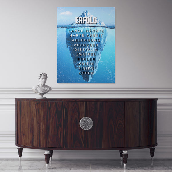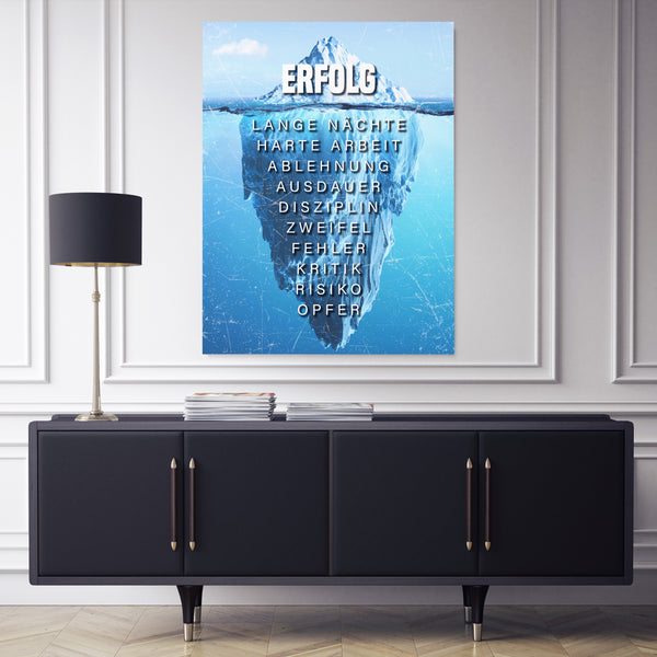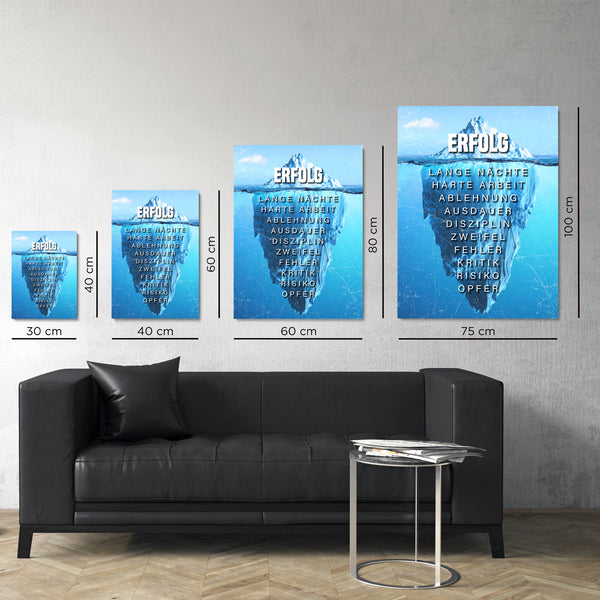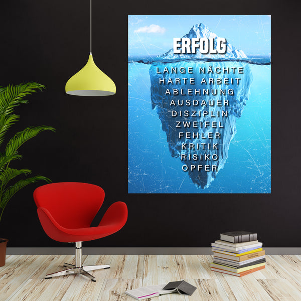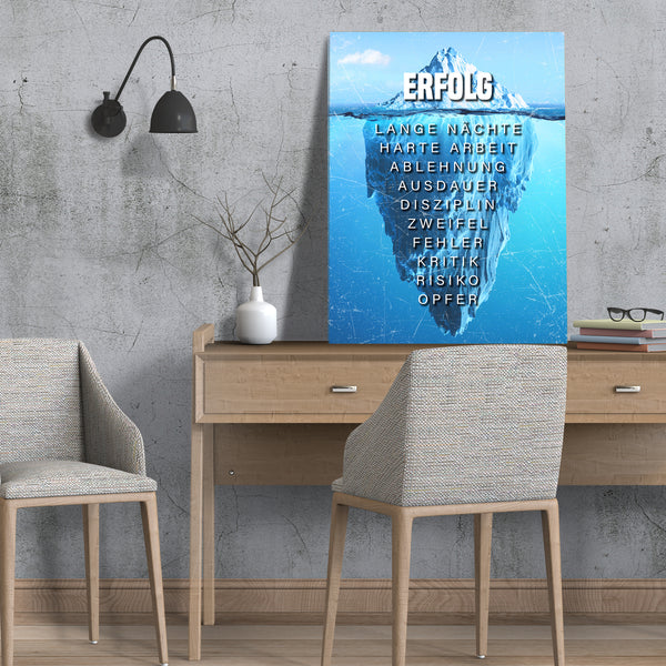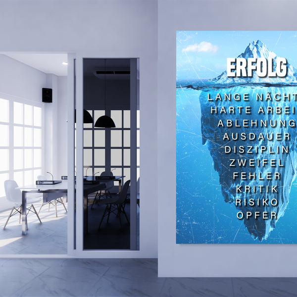 Unser Wandbild der Eisberg des Erfolgs soll deinen Erfolg aber auch deinen harten Weg bis zu Spitze darstellen. Das Bild soll dich daran erinnern, dass dein Erfolg nicht von Nichtstun kommt - und Niederschläge dich nicht von deinem Weg abhalten sollten!